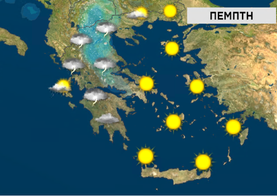 Καταιγίδες μετά το μεσημέρι στα ηπειρωτικά με σχετικά υψηλές θερμοκρασίες και λαμπρός ήλιος στα Αιγαίο με βοριάδες.